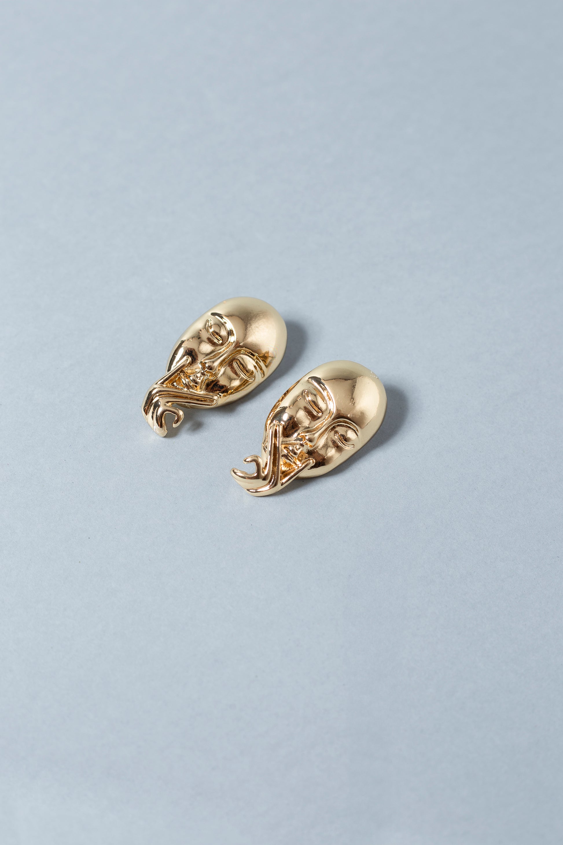 Brinco banhado a ouro com design artístico em formato de rosto abstrato, inspirado no estilo escultural contemporâneo. Uma peça marcante que traz personalidade e estilo, ideal para quem ama acessórios autorais.