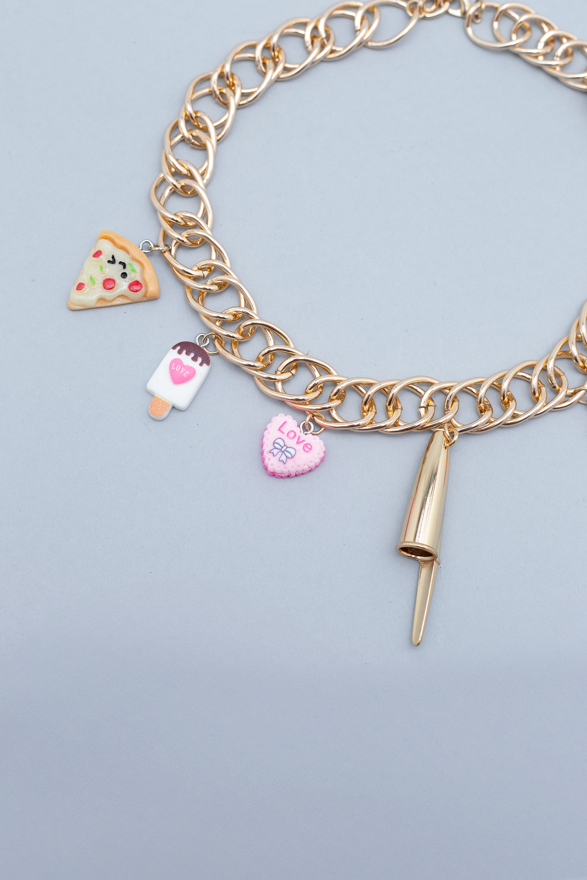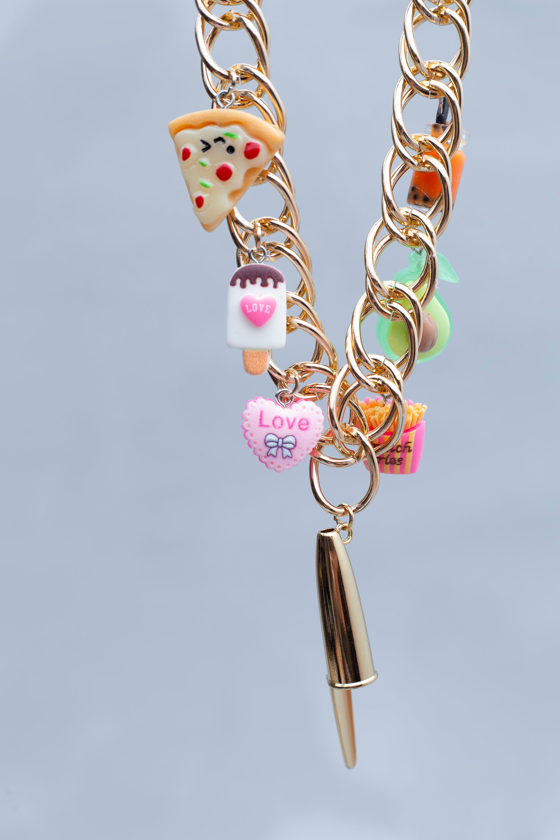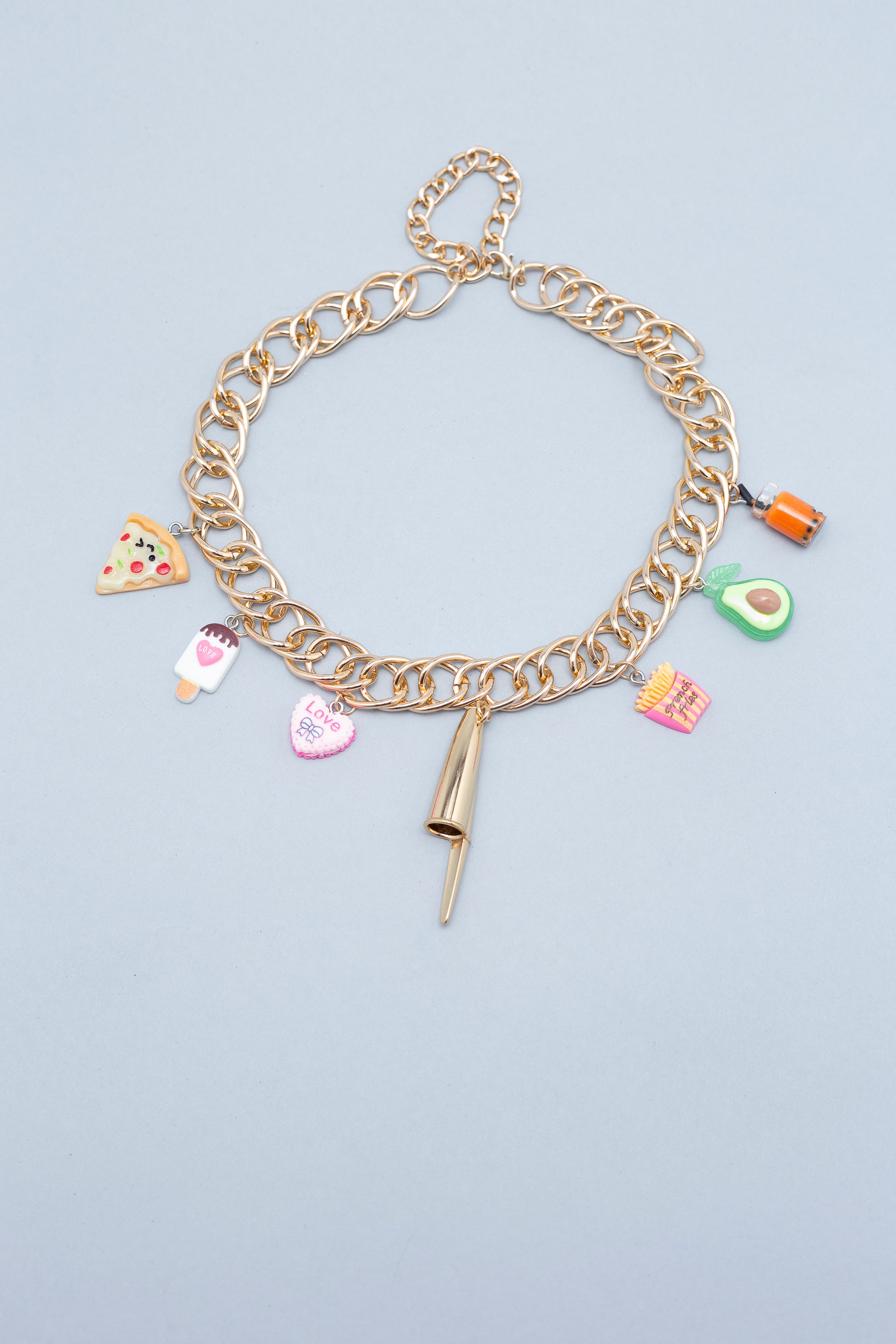 Maxi colar com corrente banhada a ouro, colorido e cheio de energia. Perfeito para looks criativos e modernos.