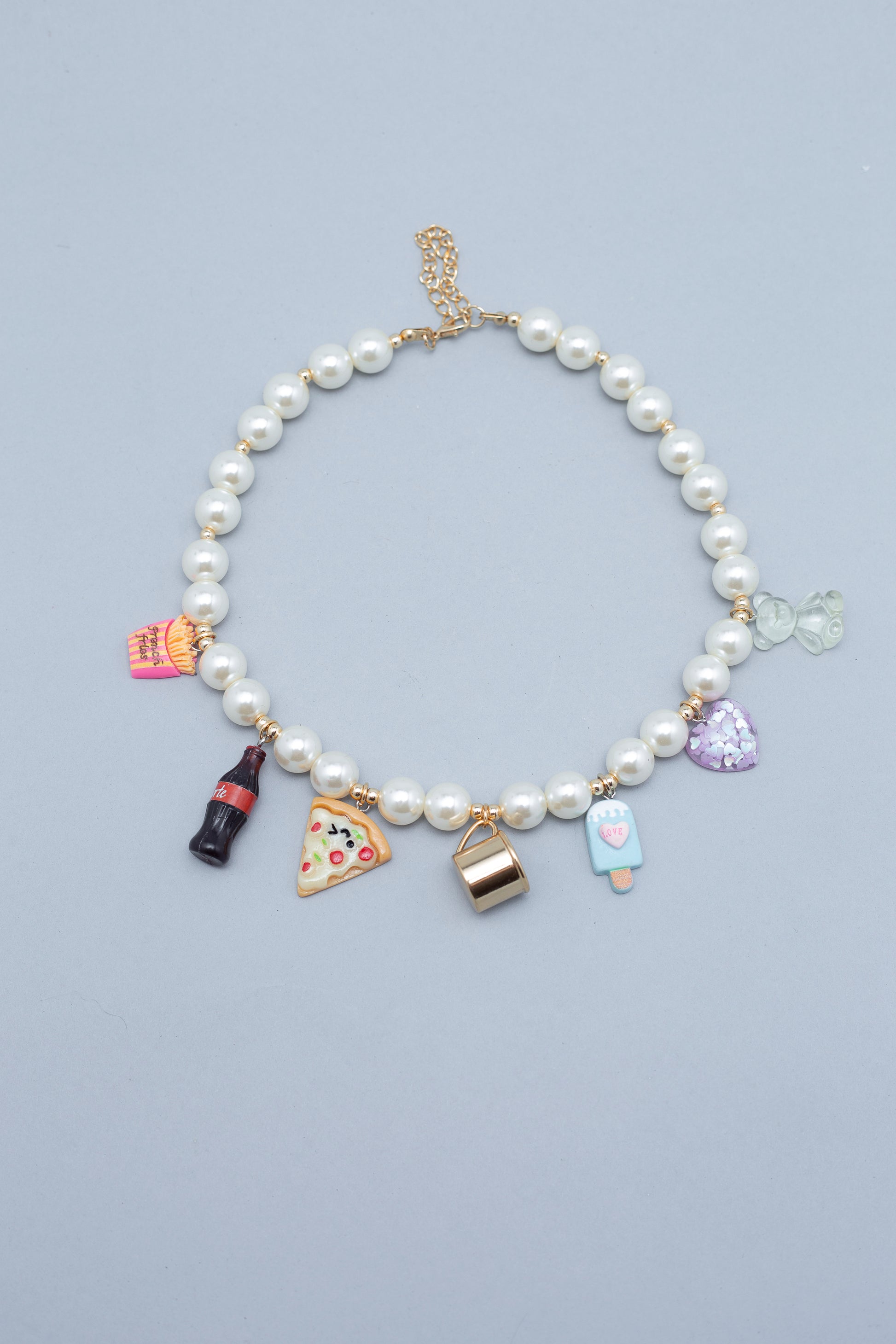Banhado a ouro e com pérolas clássicas, cores e design irreverente. Um acessório para ousar sem medo.