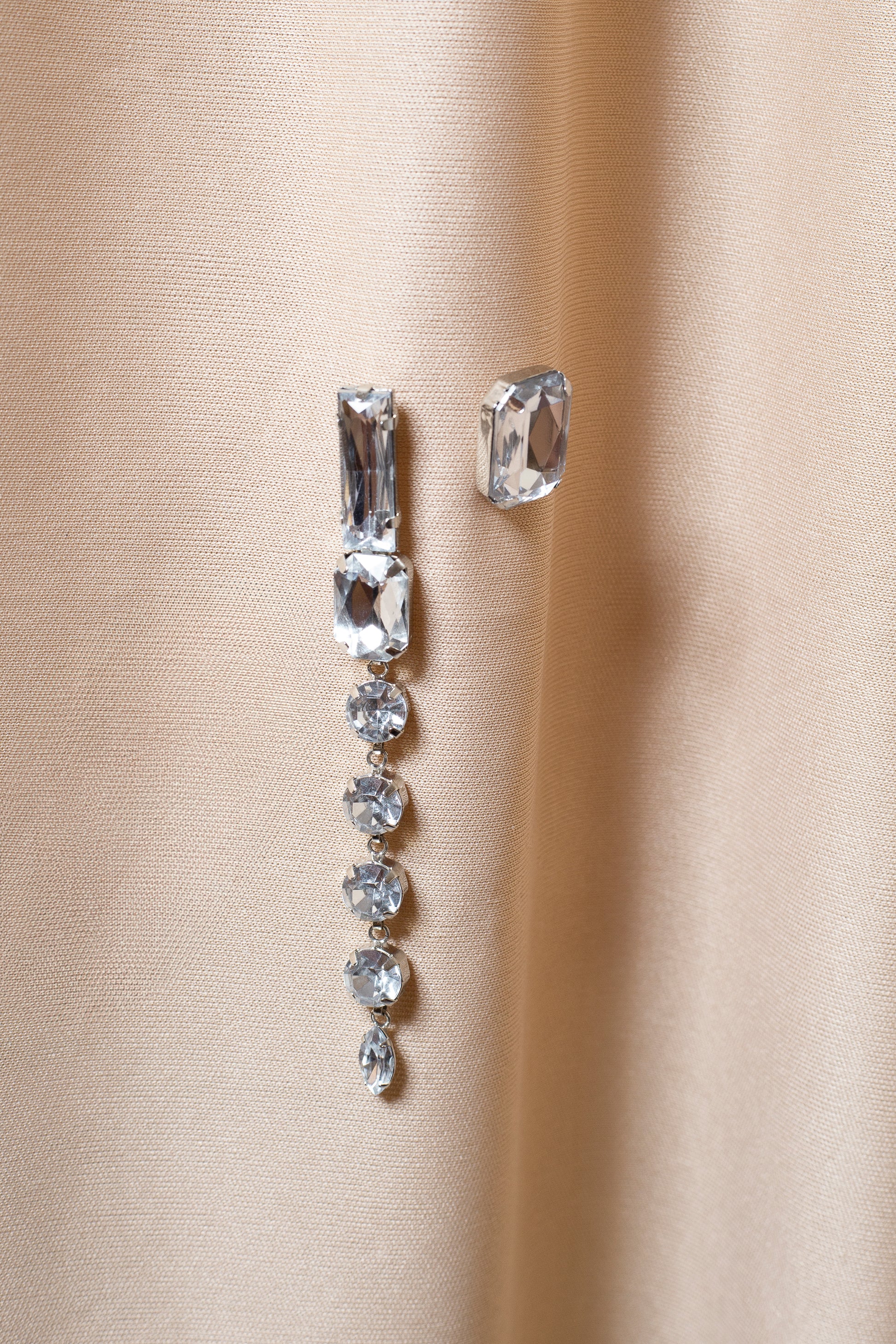 Versão luxo do clássico Elegance, banhado a prata, com detalhe assimétrico e pedras que adicionam elegância e brilho.