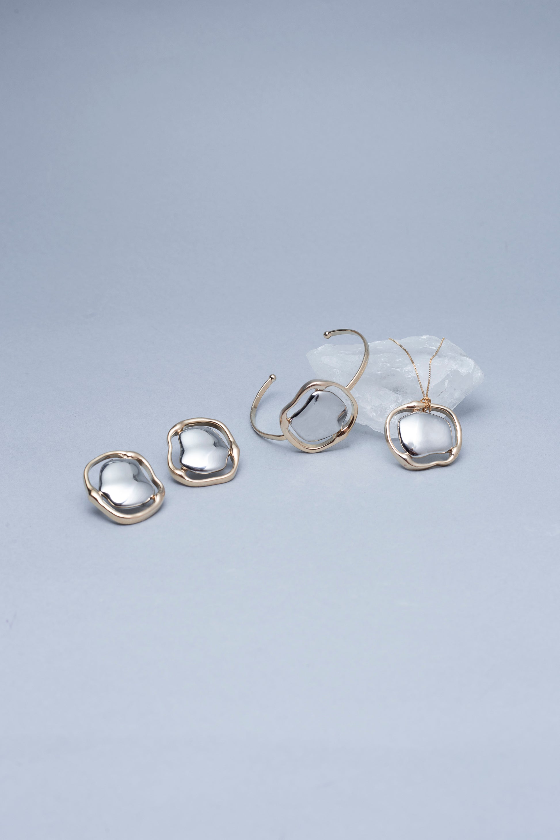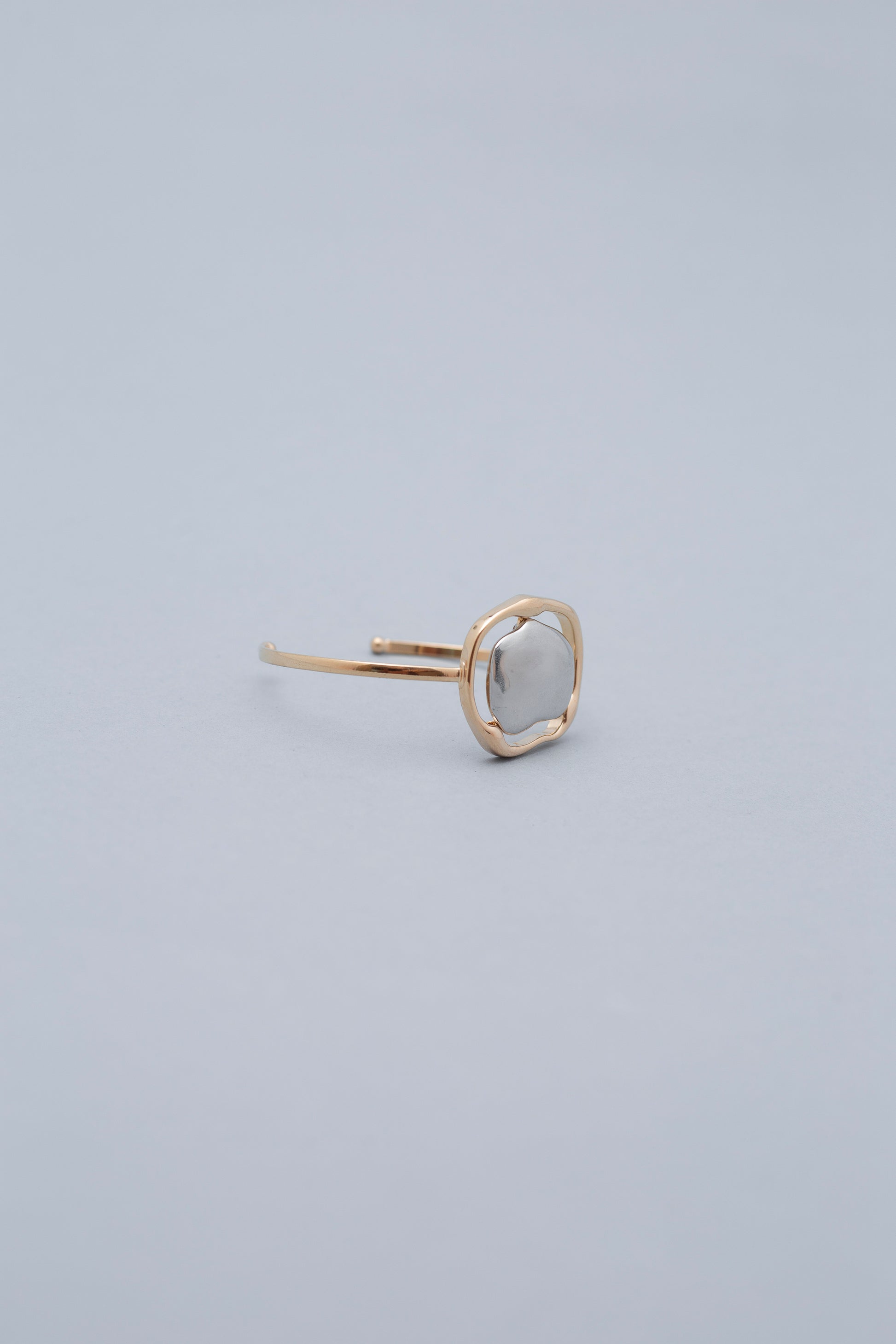 Bracelete da nossa tão amada coleção Elizabeth, sofisticado, banhado a ouro com delicado detalhe central de formato orgânico em prata trazendo charme a peça. Com aro fino e estrutura aberta que se ajusta suavemente ao pulso. Uma peça leve e elegante.