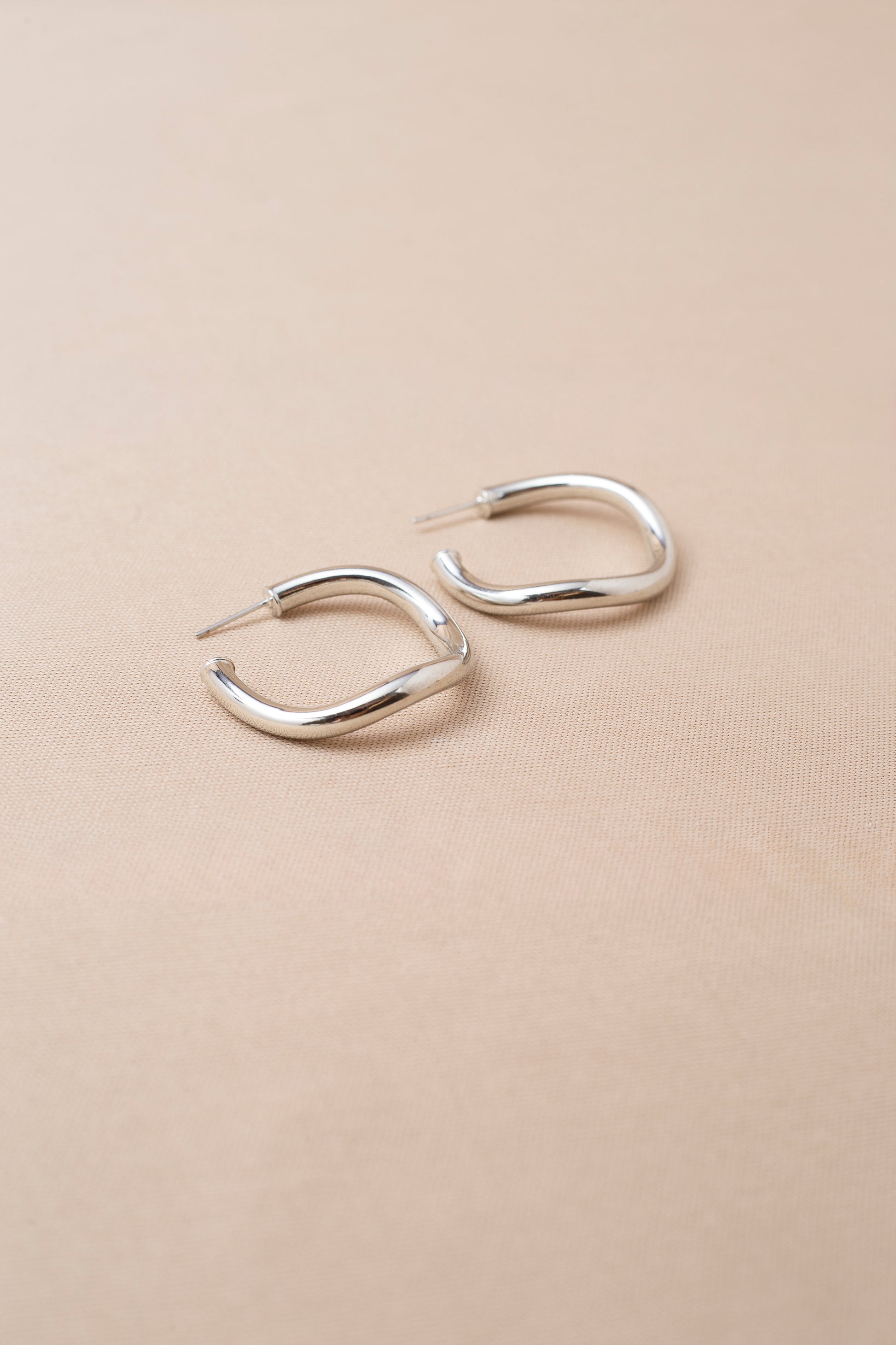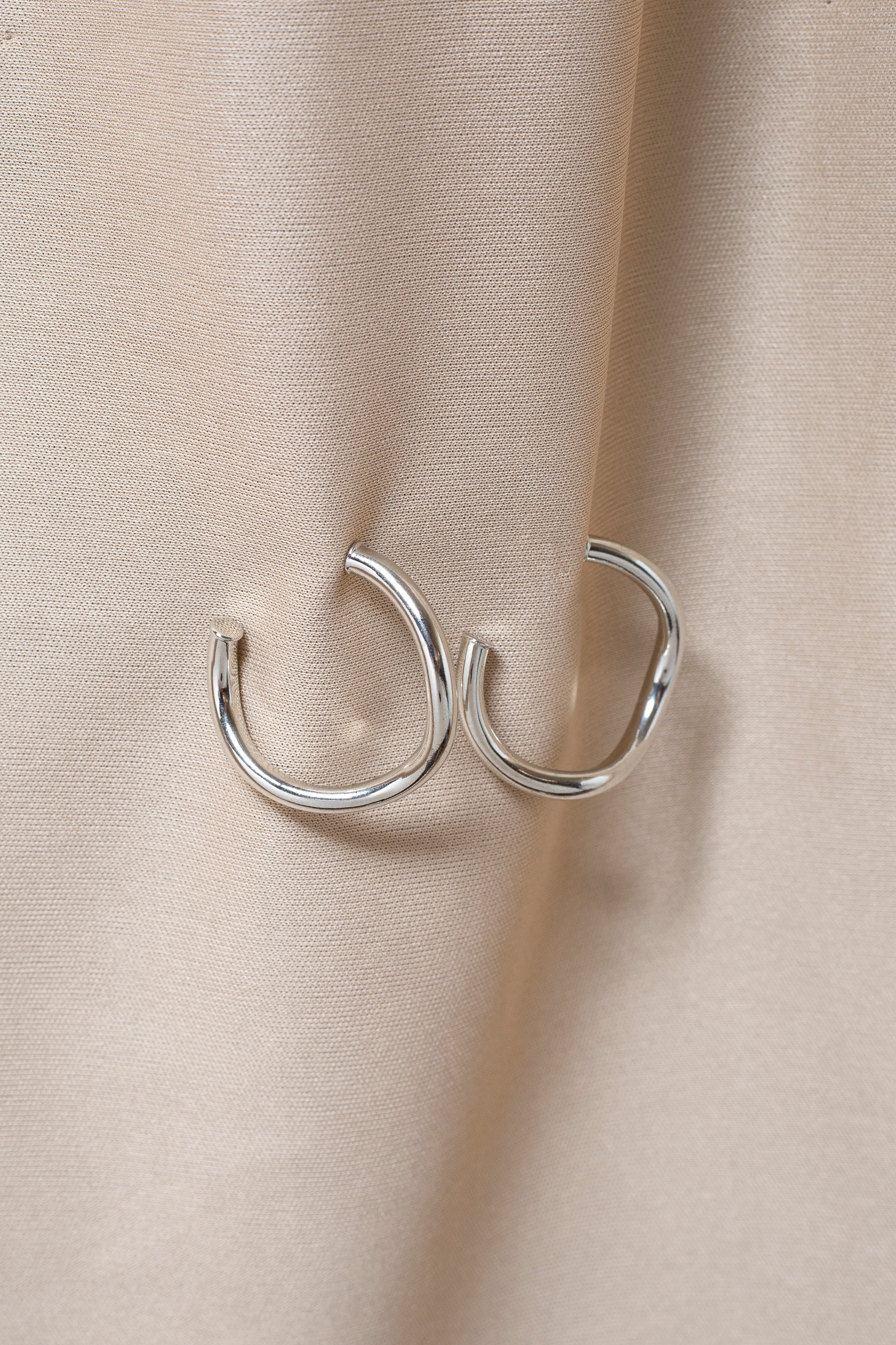 Brinco banhado a prata com design de argola aberta, moderno e sofisticado, ideal para looks versáteis.