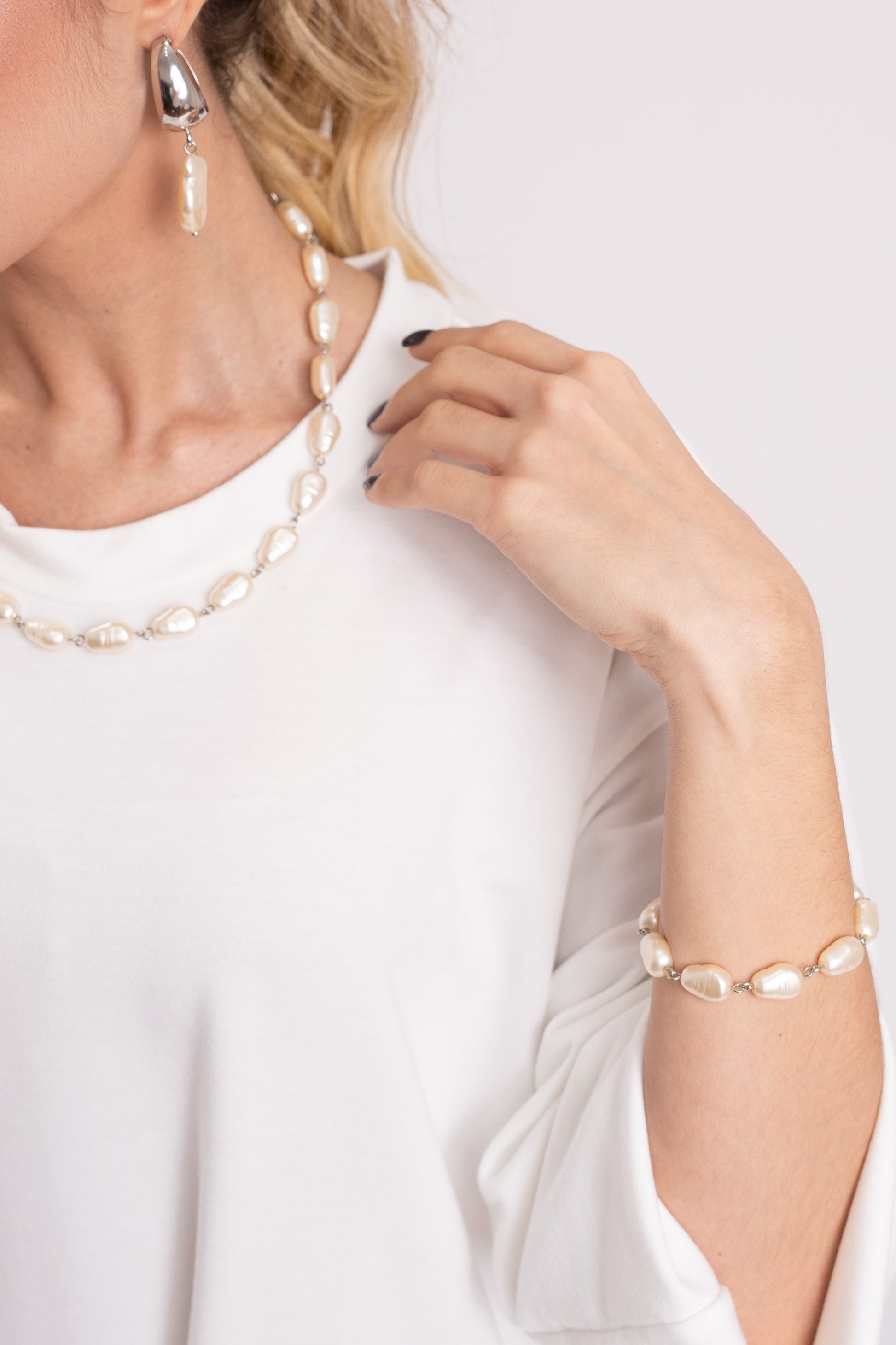 Nosso colar da coleção Salvador traz o charme orgânico e brilho das pérolas e detalhes banhado a prata. É aquele colar que combina com tudo, jeans, vestido, sobreposição, e sempre deixa o look mais arrumado sem esforço.