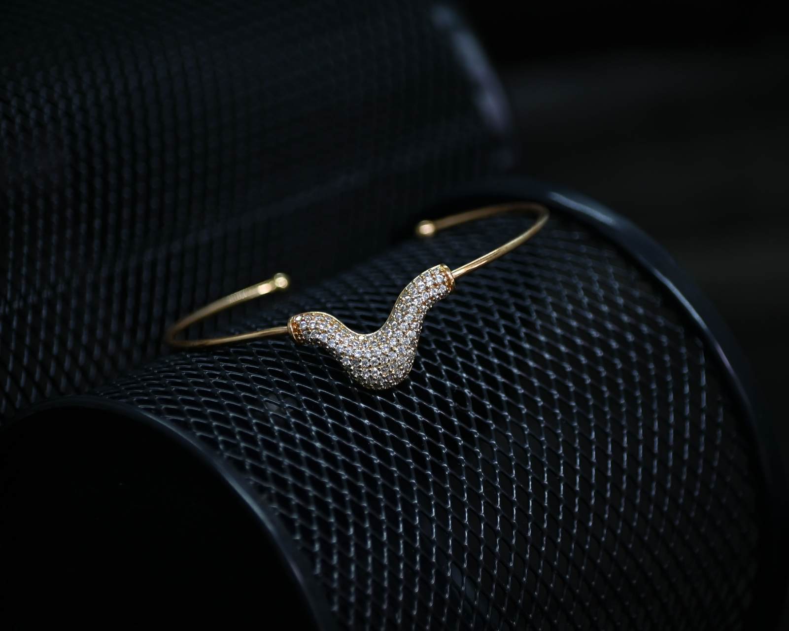 Bracelete banhado a ouro, delicado, com detalhe central que traz brilho sofisticado e atemporalidade para qualquer look.
