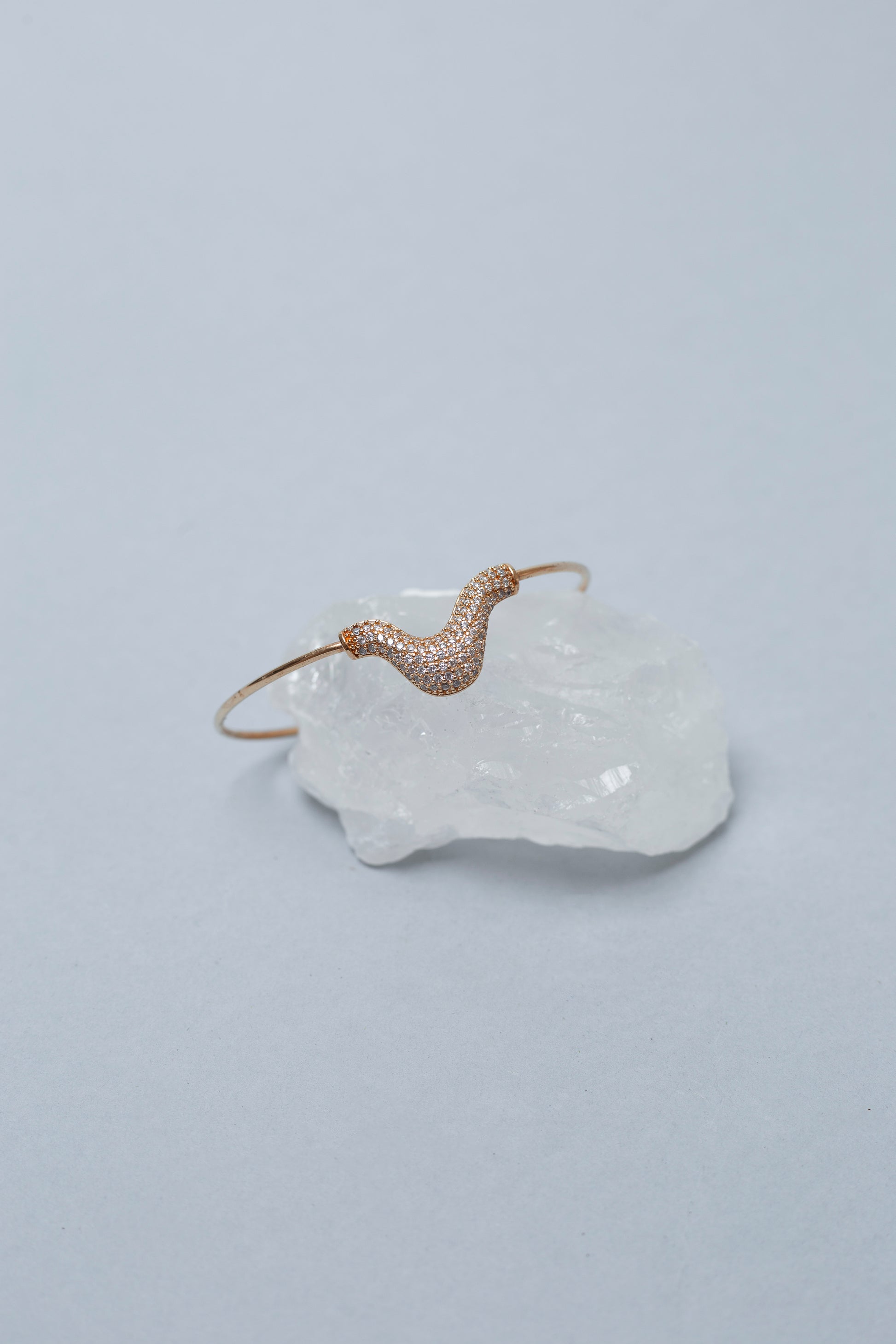 Bracelete de design delicado e orgânico, com detalhe central em formato fluido e cravejado de zircônias que trazem sofisticação à peça.