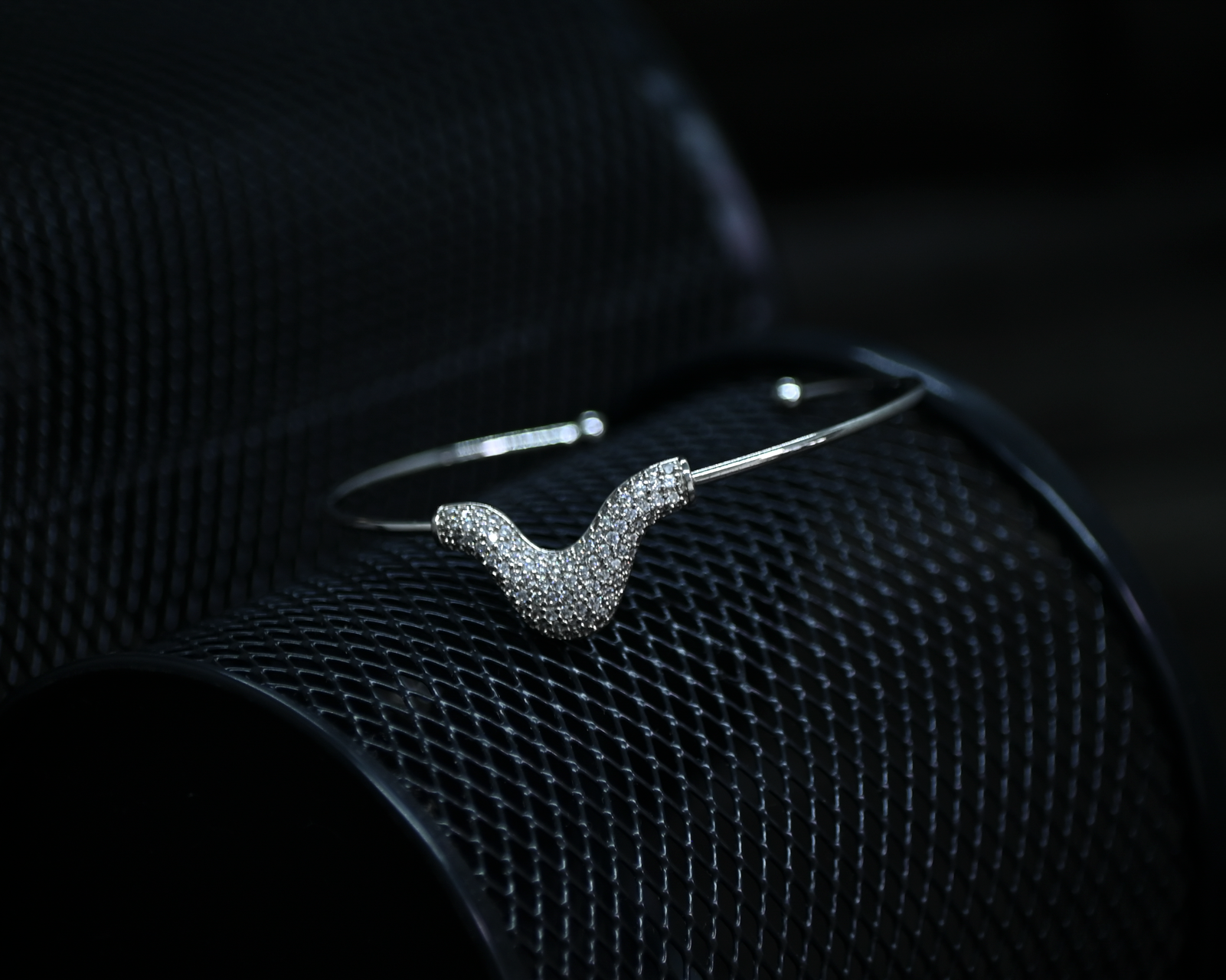 Bracelete banhado a prata, delicado, com detalhe central que traz brilho sofisticado e atemporalidade para qualquer look.